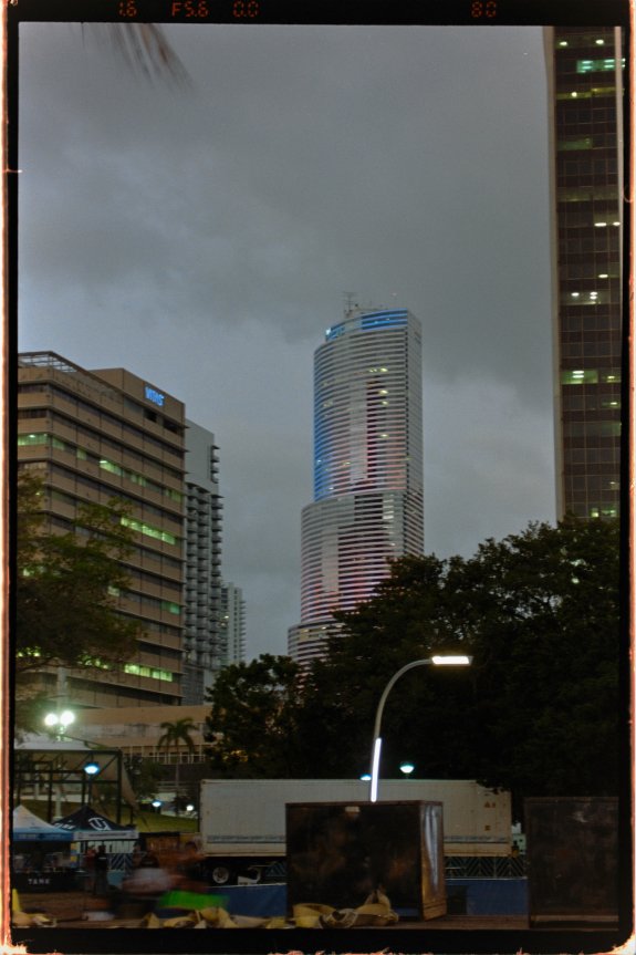 The Miami Tower used to be called the CenTrust Building. Photo shot Jan. 2023 AM on Lomography CN 100 film with the Nikon F6.