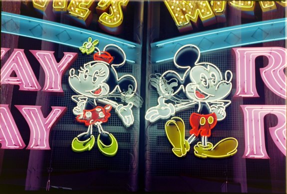 Added some fun with film double exposure of Runaway Railway neon sign to brink Mickey And Minnie's hands together haha.