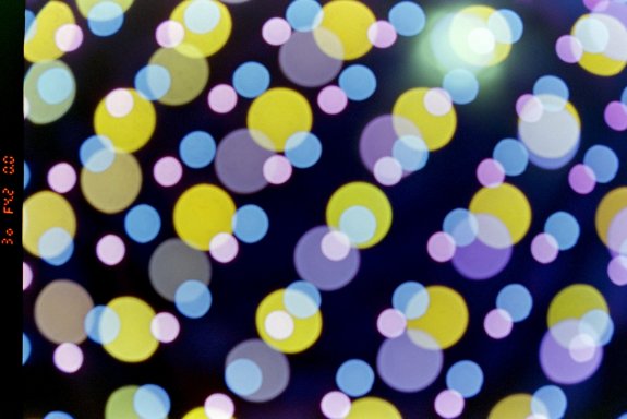 Yellow, pink, purple and blue bokeh balls made with the Nikon F80s film camera on the Nikkor 24-85mm VR G ED lens.