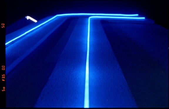 Neon light line. Shot on Lomography Color Negative 800 film with the Nikon F6, 50mm f/1.8D lens.
