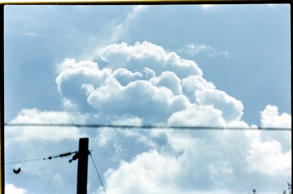 Cloud with power lines in the foreground. Shot on Cinestill 400D film. Nikon FM2n film camera.