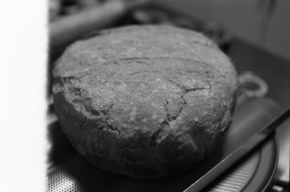 Bread made in a Cast Iron Pan. Kodak TRI-X 400 film on the Nikon FM2n.