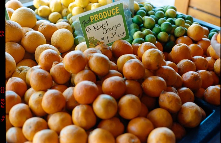 Florida's favorite fruit, Navel Oranges. Kodak Ektar 100 film. $1.29 each Fresh PRODUCE!