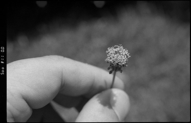 Tiny black and white flower on ILFORD HP5 PLUS film.