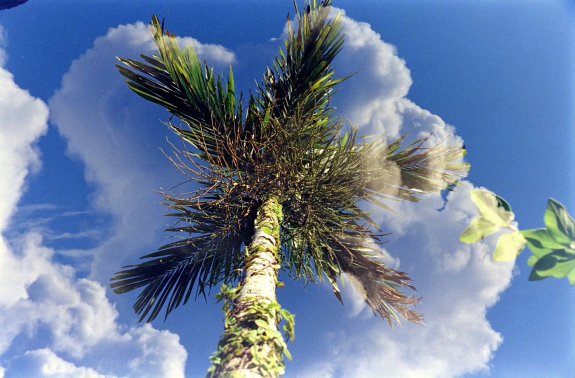 Double exposure palm tree sky.