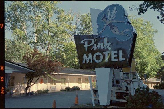 The Pink Motel neon sign was turned off. Cherokee, North Carolina. Nikon F6 with the Voigtlander 40mm f2.