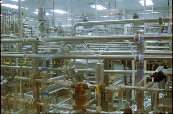Inside a dairy farm. Lomography CN 800 film