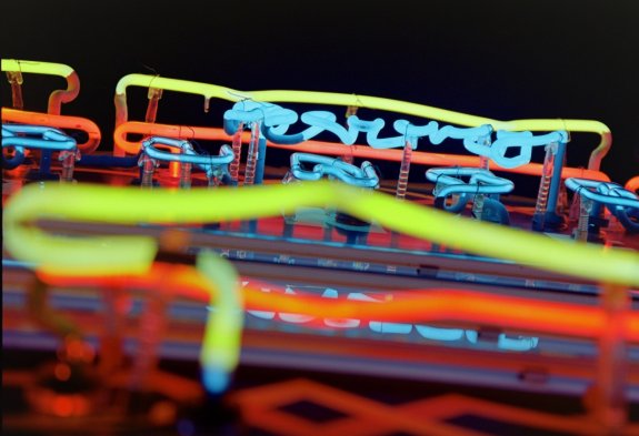 Kodak Ektar 100 film is fantastic to photograph neon at night. Nikon F80s with the Nikkor 24-85mm f/3.5-4.5 G ED lens.
