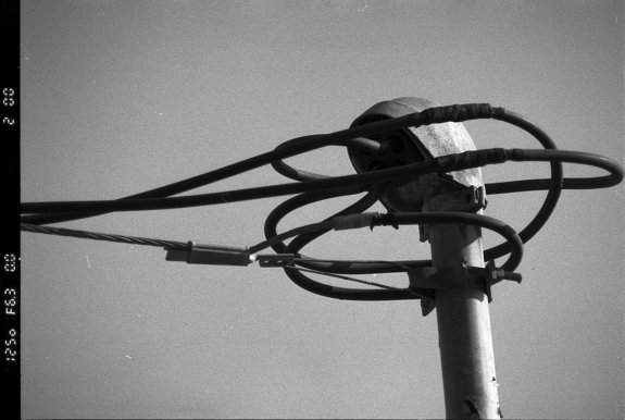 House hookup to the electric grid. Photographed on the Nikon F6 with Kentmere PAN 100 black and white film.