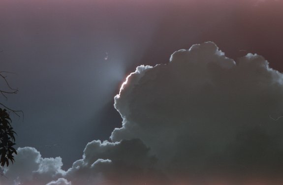 Sun peaking behind a cloud photographed with Cinestill 50D film.